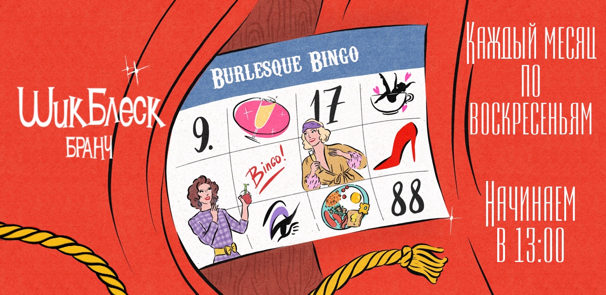 И как обычно: 6 ярких номеров, 2 тура игры в Бурлеск Бинго (с призами!) и искрометный конферанс!